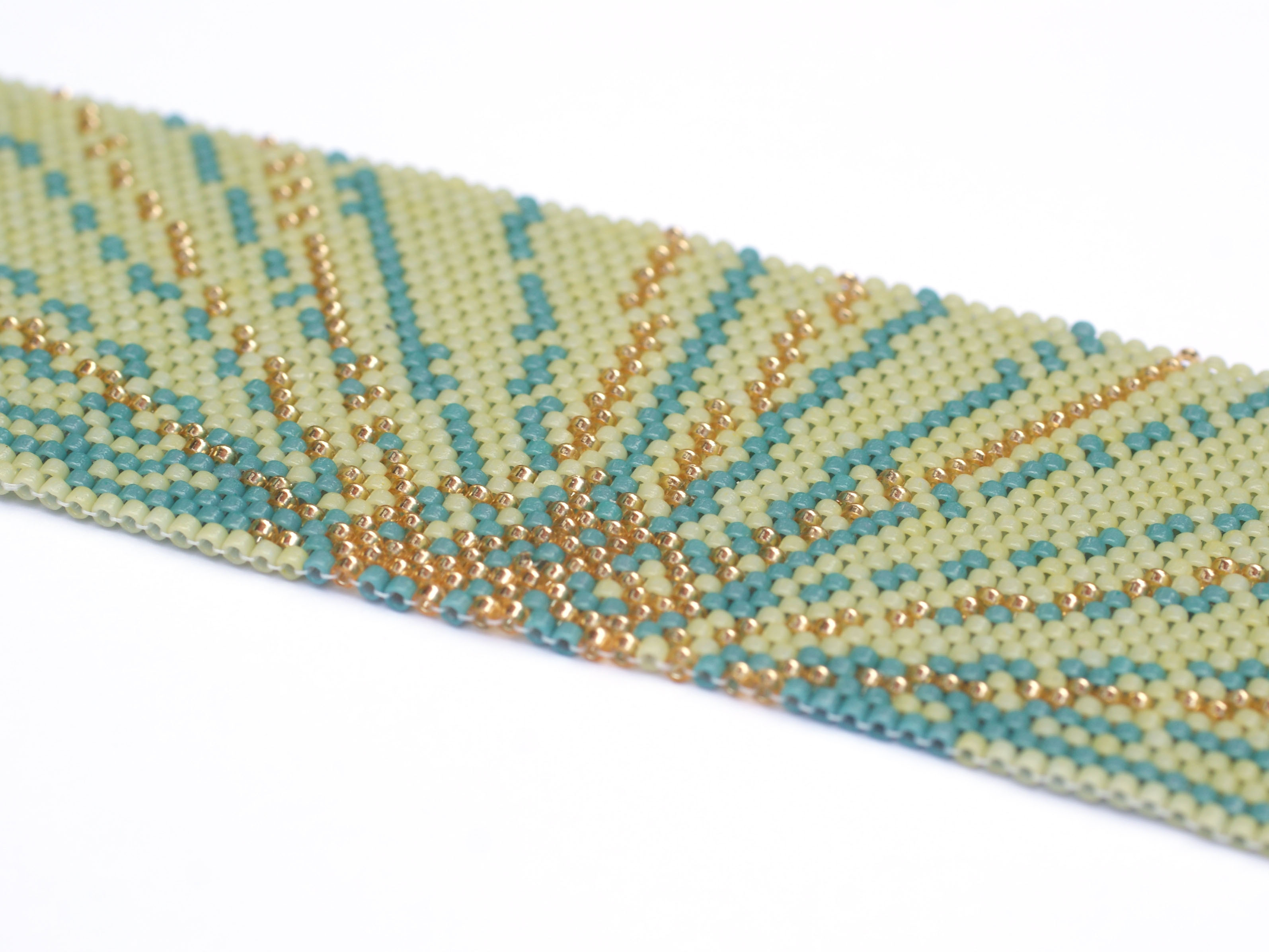 Armbandet blir 3,9 cm brett och mönstret räcker till en längd på 18 cm.