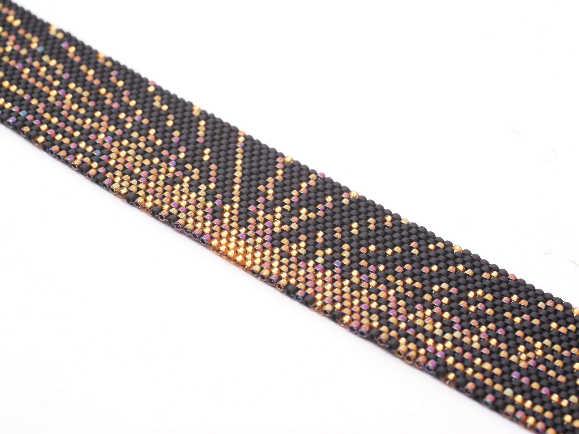 Armbandet blir 2,6 cm brett och mönstret räcker till en längd på 18 cm.