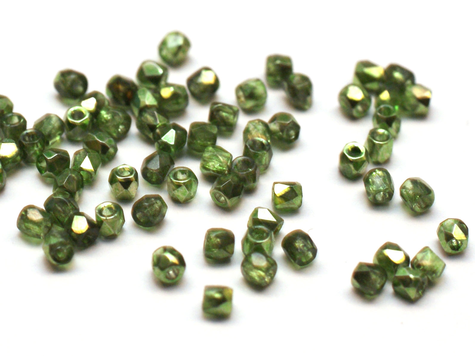 50 st Firepolished 2 mm, Crystal Olive Metallic Ice