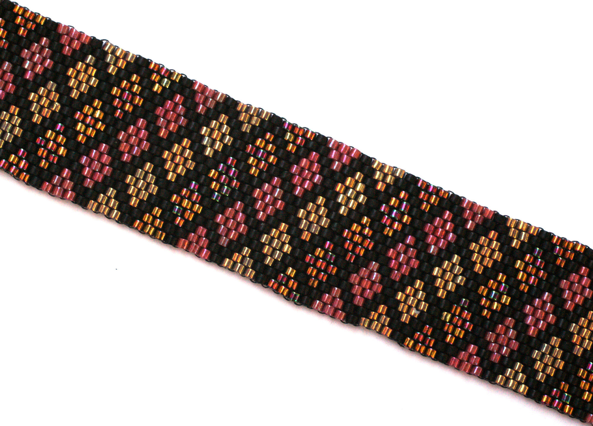 Armbandet blir 2,3 cm brett och mönstret räcker till en längd på 18 cm.