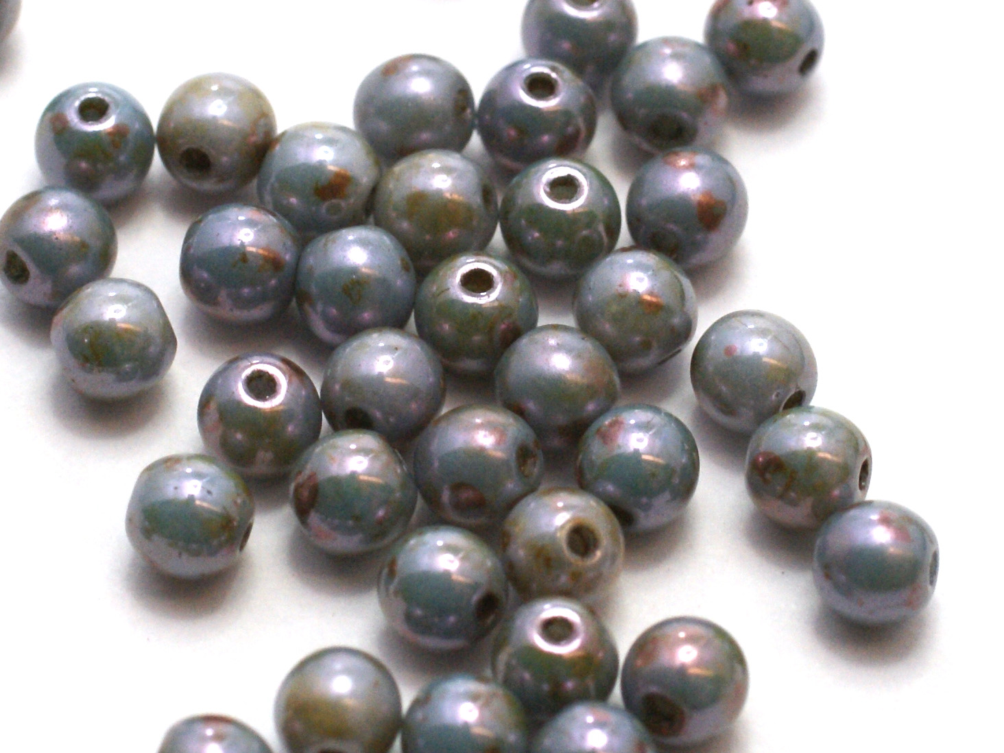 - Glaspärlor med pärlemorfärg