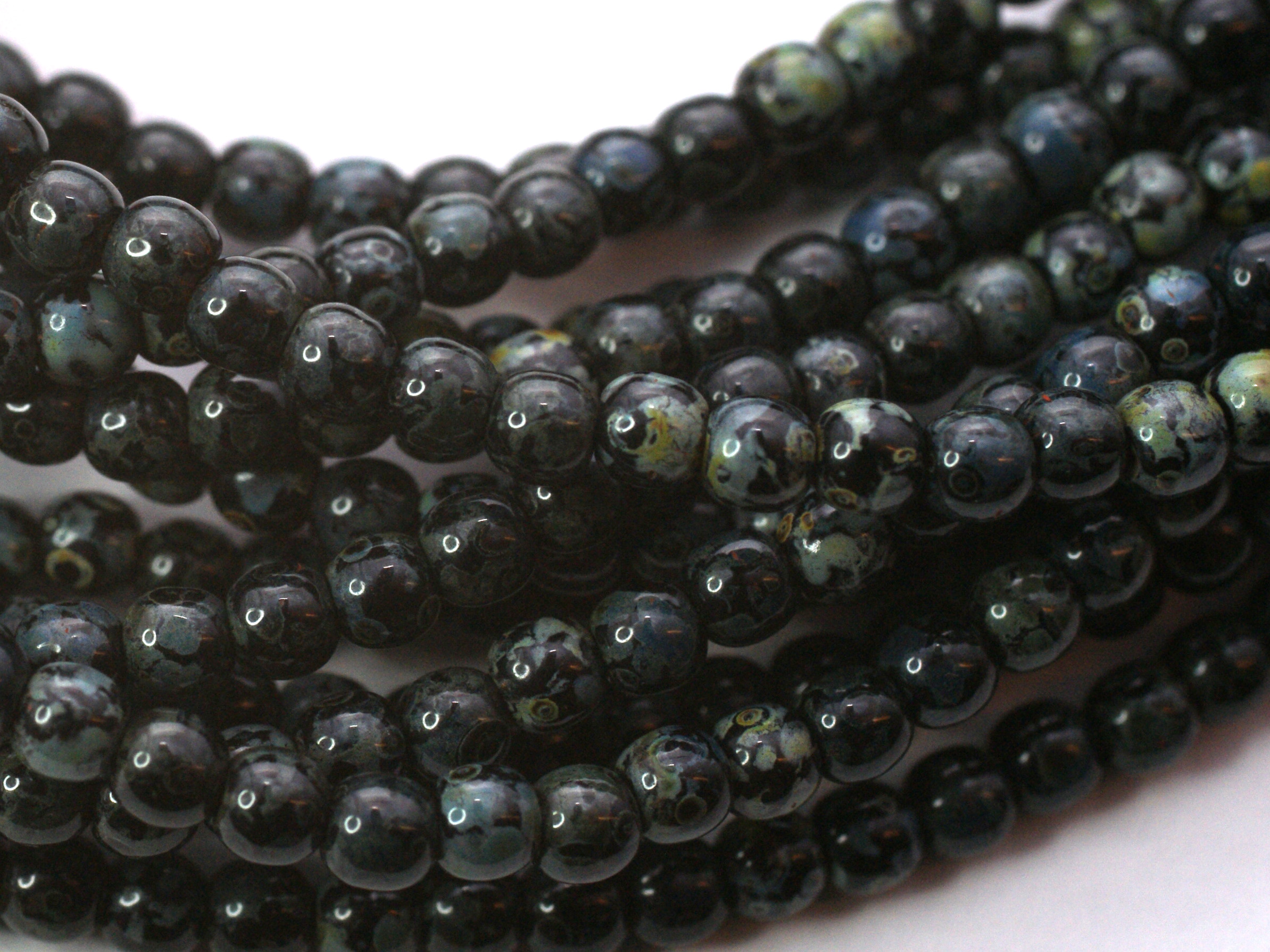 100 st runda glaspärlor, 3 mm, Jet - Picasso